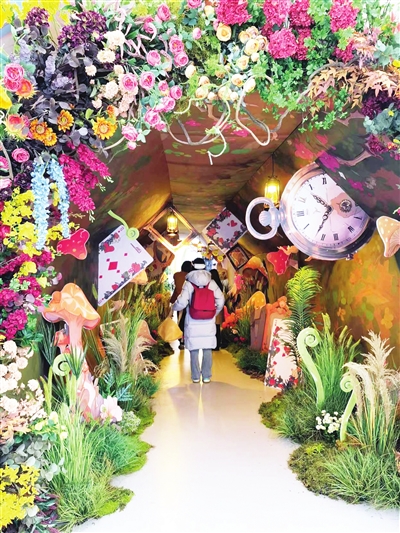 此次升级版保留了浪漫花园的独有魅力,同时融入童话《爱丽丝梦游仙境》中的经典内容,以科技力量还原梦幻仙境。依旧是七大主题空间,升级后的第一个主题空间变为“树洞之门”,入口处的幕布变成了兔子洞,如同童话里爱丽丝跌入兔子洞来到仙境。记者戴上MR眼镜,穿越兔子洞,奇幻童话之旅由此开始。