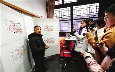 杨柳青年画国家级非遗传承人霍庆顺。 本报记者 孙震 摄