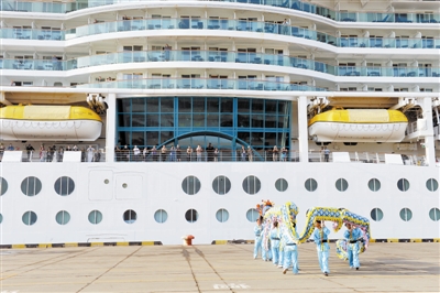 昨日清晨,满载近2000名来自世界各地游客的皇家加勒比“海洋旋律号”停靠天津国际邮轮母港。该邮轮执行275天环球航线,是史上最长的环球航海旅行。随着邮轮停靠,游客们开启了为期两天一夜的京津之旅。
