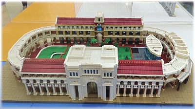 段一通与几位天津、北京的乐高玩家一起,参与了此次展览的布展工作。有许多外地玩家的作品是邮寄到天津的。乐高由零件拼插而成,在运输过程中,大型作品需要被拆分成若干个部件,而且运输过程中也难免出现零件散落的问题。段一通与几位参与布展的乐高玩家,就承担起了现场复原组装的任务。“复原过程本身也是互相学习的过程。通过复原外地小伙伴们的作品,我们可以了解他们的构思、他们对天津文化的理解。”