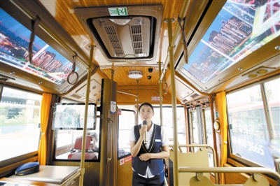 图为仿古铛铛车亮相西北角特色美食街区。 本报记者 张立摄