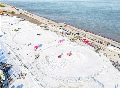 日前,天津东疆综保区打造的“海岸雪世界”冰雪主题乐园暨浪潮东疆冰雪嘉年华开园。园区坐落于东疆亲海音乐广场,覆雪面积8万平方米,建有长约200米、宽28米、双通道8滑道的超长冰滑梯和雪地漂移、雪地转转、雪地降速等十几个雪地项目,让游客在此面朝大海,享受冰雪世界。通讯员 王焕锁 摄