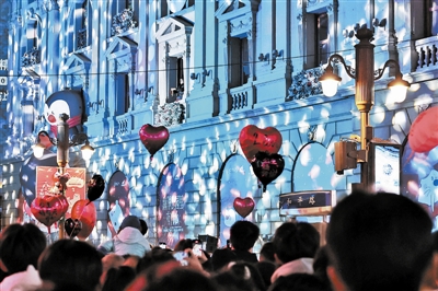 金街大铜钱区域,开展主题灯光秀、歌曲联唱等活动。(资料图) 摄影 本报记者 吴迪