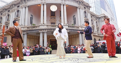 大年初五至大年初七,户外版《日出》继续在金街大铜钱广场和观众见面。