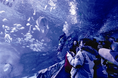 游客在天津极地海洋公园内游玩 摄影 本报记者 周伟