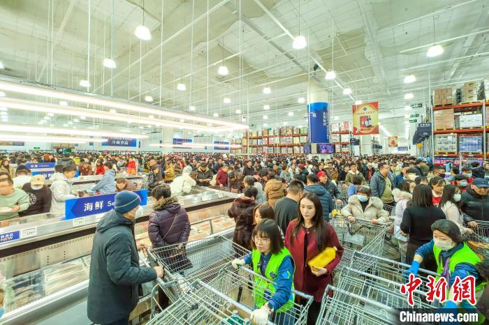图为2月1日,市民和游客在天津一家超市购物。中新社记者 佟郁 摄