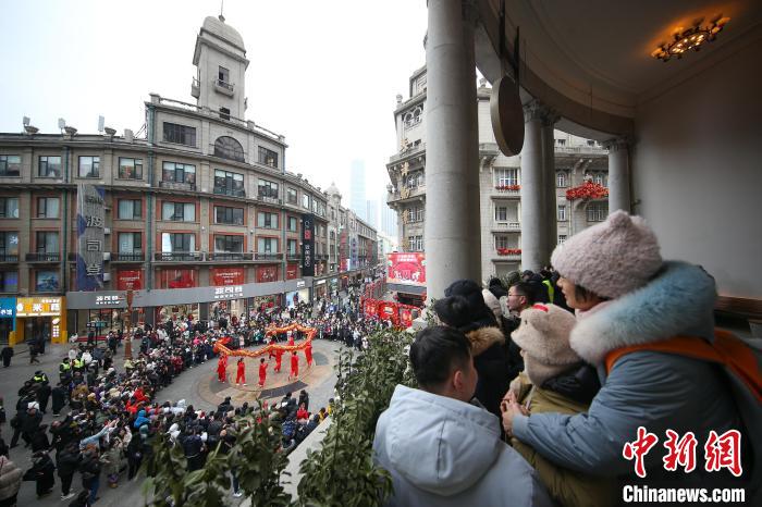 图为1月31日,市民和游客在天津金街观看民俗展演。中新社记者 佟郁 摄