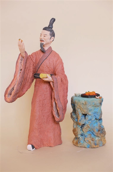张旸:近年来,我创作了一系列名为“这方土地这方人”的作品,讲述中国历史上对这片土地有贡献的人物。这些作品既是非遗传承,也是思政教育的一部分,旨在通过泥塑艺术传递文化精神。这些作品在制作过程中充分运用了“九技五法”,特别是在细节处理上,如人物的面部表情、服饰纹理等,都体现了古泉州泥塑的精湛技艺。此外,我们还尝试了写意与写实相结合的手法,使得作品在保持传统的同时,也具有现代审美价值。