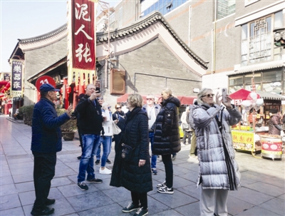 而在市区的游览过程中,充分反映天津本土文化特色的古文化街成了游客的最爱,大家在1个多小时的时间里开启“逛吃”模式,既体验了天津人的生活,也为自己的亲友带回了一份份独属于天津的美好回忆。