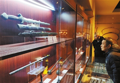 东丽区收藏家协会会长李志勇介绍,此次展览中最值得一看的展品是乾隆乾坤双剑,“这对剑双剑同鞘,剑身蚀刻各种花纹,其中包括龙、凤和皇帝、皇后勾画像,象牙柄上也雕有精美图案,护手上刻有‘乾隆年造’字样。”工作人员介绍,因预约参观者络绎不绝,此次展览将延期至4月初。