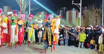 有一次,一位家长跟弥志国说,孩子个小,每次看会都得抱着或举着,希望满足孩子们近距离看高跷的愿望。于是,同利高跷调集精兵强将,为孩子们演示空翻、摔叉、蝎子爬、鲤鱼打挺等绝技……