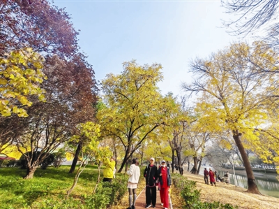 当11月的风为天津带来一丝清冽,这座城市的美便悄然呈现出了另一种韵味——不是盛夏浓墨重彩的绿树成荫,而是一幅以金黄与绿色交错、被光线温柔勾勒的水粉画。日前,记者走上街头、走进公园实地探访,在落叶与暖阳交织的静谧中,一同解码梧桐与银杏的变色密码,捕捉叶片由绿渐黄的美好时段。