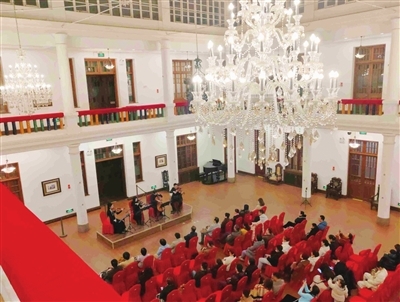 在天津,古建与音乐的邂逅已突破单一场景。安里甘艺术中心的哥特式尖拱下,每周不同主题的音乐会成为古典乐迷打卡地。莫扎特旋律从琴弦流淌,与高穹顶声学共鸣,音符似在百年拱廊间跳跃。艺术中心还策划室内外音乐交流活动,观众可在草坪上与音乐家、乐迷分享心得,增添生活气息。曹禺剧院则以戏剧与音乐跨界赋予古建新生。这座毗邻曹禺故居的清末欧式砖木建筑,已成为多功能艺术空间。“耳朵漫游指南”旋律共振音乐会等公益演出,为居民与游客提供优质艺术资源。