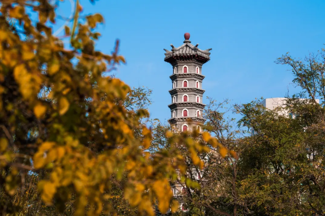 往高望去,假山上的中和塔旁,穿梭着玩笑的孩童,1872年,仿江南西湖保俶塔而建的它,符合 “天人合一”的意象和审美。