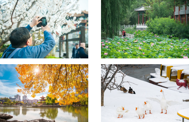 生态更是灵,春天桃花海棠争艳,夏赏荷香满塘,秋观银杏洒金,冬见落雪挂枝头,四季分明,步步是景。晚清重臣荣庆曾留下“名园三百亩,处处见桃花”的诗句,众多近代名人都曾在此驻足,青年周恩来也与南开同学到此游学。