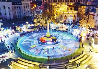 上周末,位于河北区意风区的巴布布冰场再次亮相,夜幕下的冰场被光影所环绕。