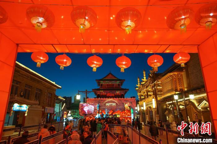 夜幕降临,天津宝坻区了凡公园的“盛世溢彩 文耀宝地”主题花灯展游人如织。这是宝坻区举办的了凡公园第二届新春文化庙会的火热现场。从除夕至正月十五,每天晚上的5点半至9点,这里的花灯将按时点亮。