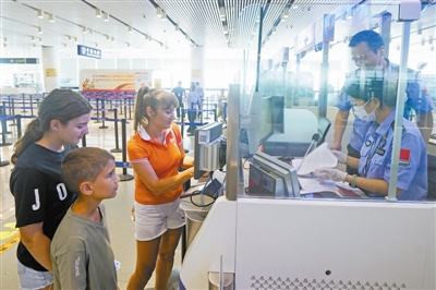 7月23日入境的“地中海号”邮轮上,一个微型家庭旅游团享受免签政策,无需办理签证便可登陆天津观光游玩。