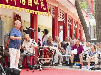 ”每周日9点到12点,红桥区西沽公园非遗长廊前,都会上演由戏迷票友自发组织的京剧演出,演员和观众大多是老年人。