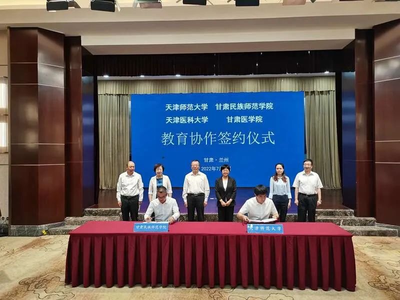 7月6日,天津师范大学与甘肃民族师范学院、天津医科大学与甘肃医学院教育协作框架协议”签约仪式在兰州举行。两省市四所学校将在教育教学、科研创新、成果转化、人才培养、联合办学等领域广泛开展交流合作。