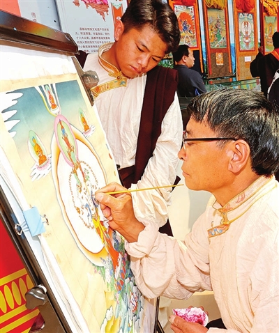 昨日,“卓卓康巴·传奇昌都”──西藏自治区昌都市文化旅游专题展在天津博物馆开幕。展览以昌都市文化旅游资源为主体,通过图片展览、民俗展示、唐卡传承人现场绘画、民间歌舞表演等活动,推介昌都地区民族特色、旅游景点,加强津昌两地文化旅游深度合作,促进各民族交往交流交融。展览将持续至10月31日。