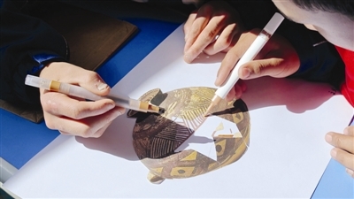 藏族学生在王老师的美术课《文物修复师》上感受藏汉文化的交流交往交融