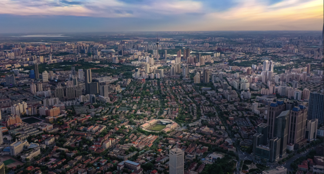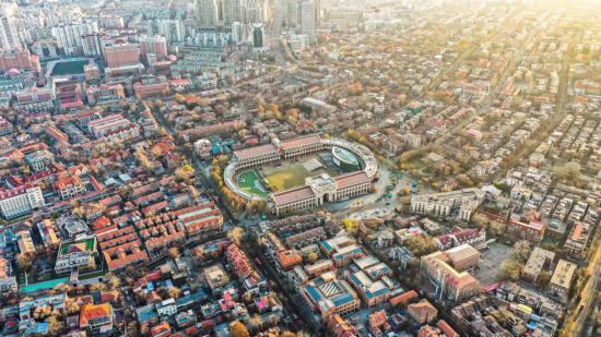 这是从空中拍摄的天津市中心城区的小洋楼一景。