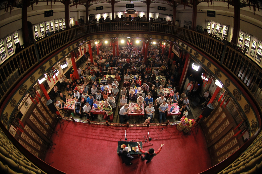 在天津市南开区古文化街的一间茶馆内坐满了前来听相声的观众。