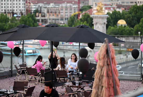 几位友人在天津市和平区金街商圈的“印象城”闲坐聊天。