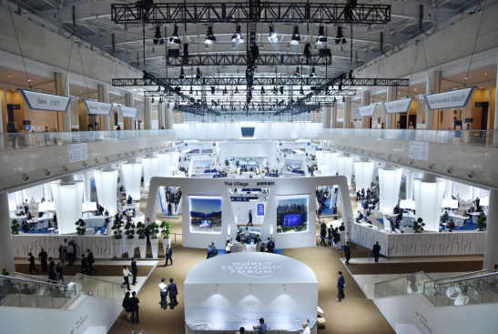 在天津梅江会展中心拍摄的第十二届夏季达沃斯论坛会场一景。