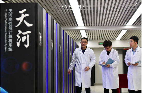 工作人员在国家超级计算天津中心“天河三号”原型机机房内巡查。
