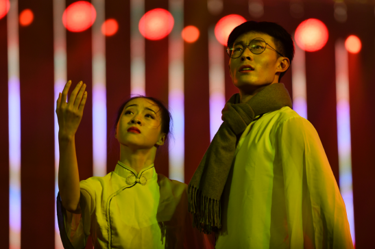 学生演员在南开大学建校100周年纪念晚会上表演音舞诗画。