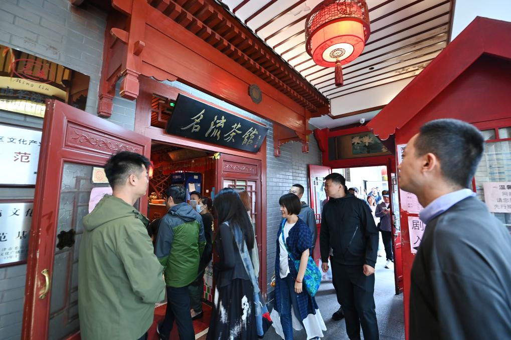 在天津市南开区古文化街名流茶馆,观众入场准备观看演出。新华社记者 李然 摄