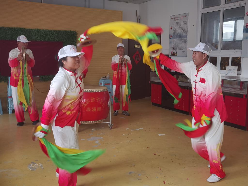 “镲”是一种打击乐器,也是配有红绿色绸带等饰品的舞蹈道具;“飞”则指队员表现动作幅度。“在表演时,带着绸子的镲处于飞舞状态,所以叫飞镲。团队中有人打鼓奏乐,有人捧铙伴奏,也有人舞蹈飞镲。”一介绍起飞镲,60多岁的高景生滔滔不绝。