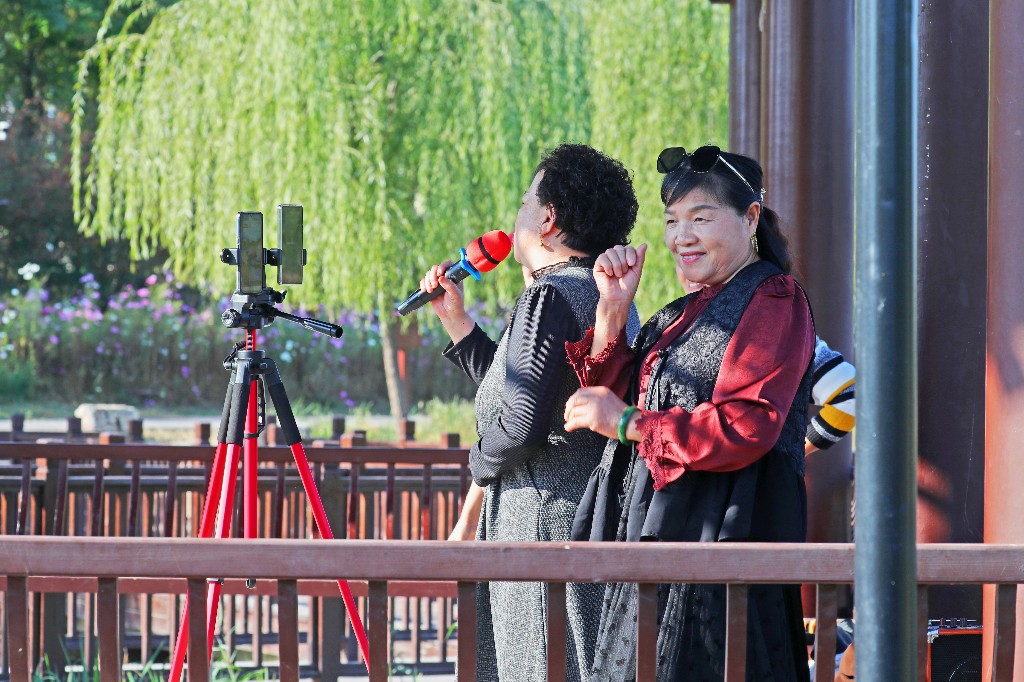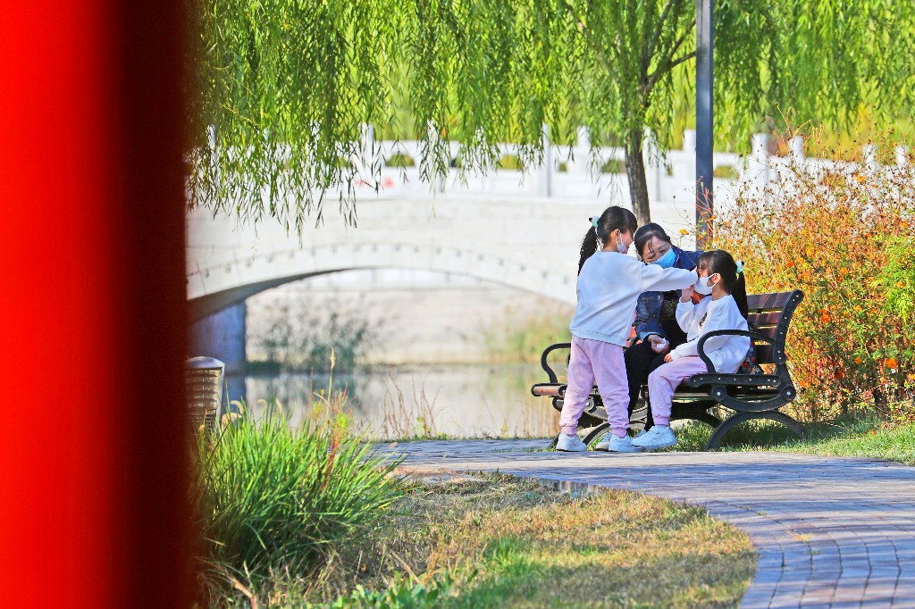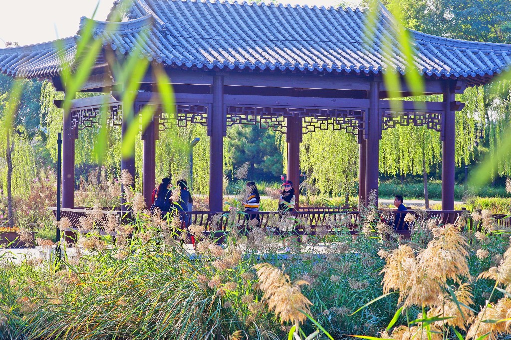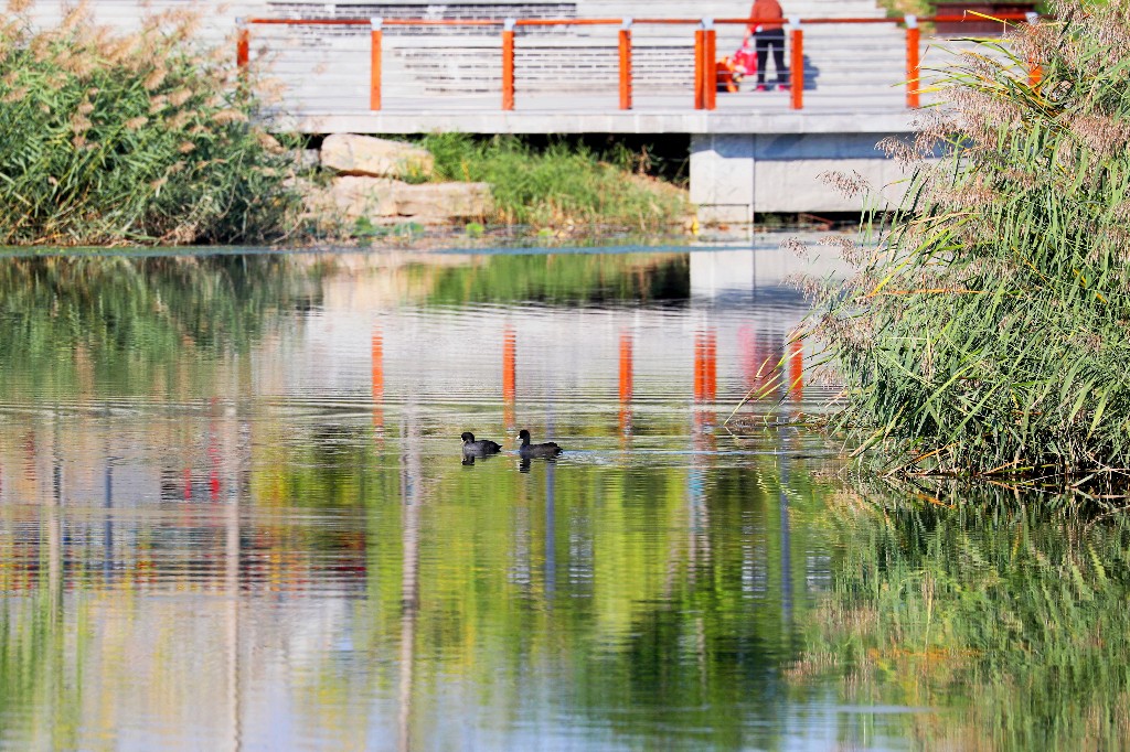 秋日,天津市宝坻区了凡善廉文化主题公园(以下简称“了凡公园”)内,芦荻飘荡、树叶渐黄,清澈见底的水塘内各种水鸟自由游弋,风景美不胜收,大批市民游客赶来拍照打卡。