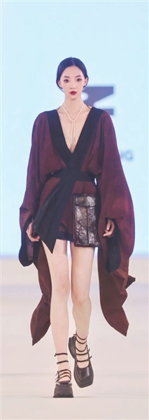 作为一名资深的服装设计师,王紫菲的核心创作手法集中在服饰语言的传达上。“我致力于探讨如何通过时装设计来凸显不同文化的独特风貌。在此背景下,我期望能够依托自身所擅长的服装设计技艺,传达对天津这座城市深沉的情感与热爱。在设计实践环节,我尤为关注天津所特有的历史与现代相融合的特色,例如,将海河文化、传统建筑的线条与色彩以及民间手工艺等文化元素,巧妙地融合进我的设计理念之中。再如,我会以工厂元素、海河的波浪、海河周边的文化生态作为面料研发、制版剪裁的灵感来源,或者将瓷房子中的曲线线条融入服装的廓形之中。通过这些方法,我期望能够将天津的文化内涵与现代时尚风格结合,创作出既具有地域特色又兼具时尚元素的服装作品。”王紫菲表示,此类设计不仅能够呈现天津的多元文化面貌,也能为服装设计领域注入新的视角与灵感,从而促进服装设计与地域文化的深入融合及创新。