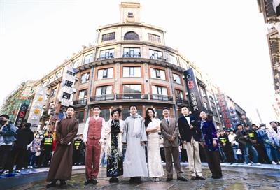 小剧场里的沉浸式,是天津人艺对演艺新空间的全新探索,也是对话剧形式的全新突破。有了剧场沉浸式的经验后,天津人艺走出剧场,开始了“无处不沉浸”的创演步伐。“太阳升起来了,黑暗留在后面……”在历史悠久、繁华依旧的滨江道与和平路交口,一段实景演出的曹禺名剧《日出》让现场观众欢呼雀跃。今年国庆假期,天津推出“无处不沉浸 打卡CITY SHOW”活动,演出突破了传统戏剧的界限,以独特的沉浸式体验迅速“出圈”。特别是在曹禺创作话剧《日出》的故事背景地——惠中饭店旁边上演的沉浸式话剧《日出》片段,陈白露等剧中人物回到了曹禺先生创作的地方,“原景重现”这一经典巨作,让景点既“可观”又“可游”,游客既“看景”又“入景”。演出巧妙利用恒隆广场二楼与大铜钱广场的互动关系,让整个广场成为舞台。这一奇特的邂逅,引得现场千余名观众纷纷拿出手机照相、录像并发布到网络上。