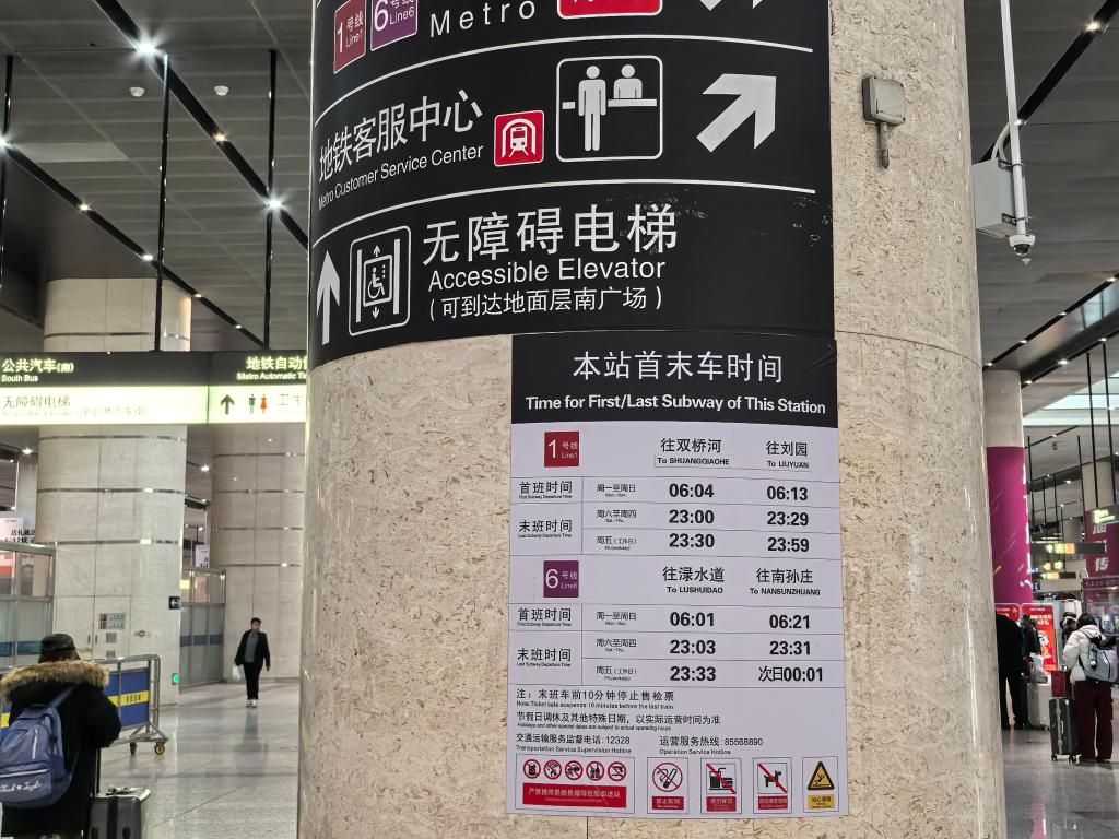 在天津西站张贴的该站地铁首末车时间。新华社记者 刘惟真 摄