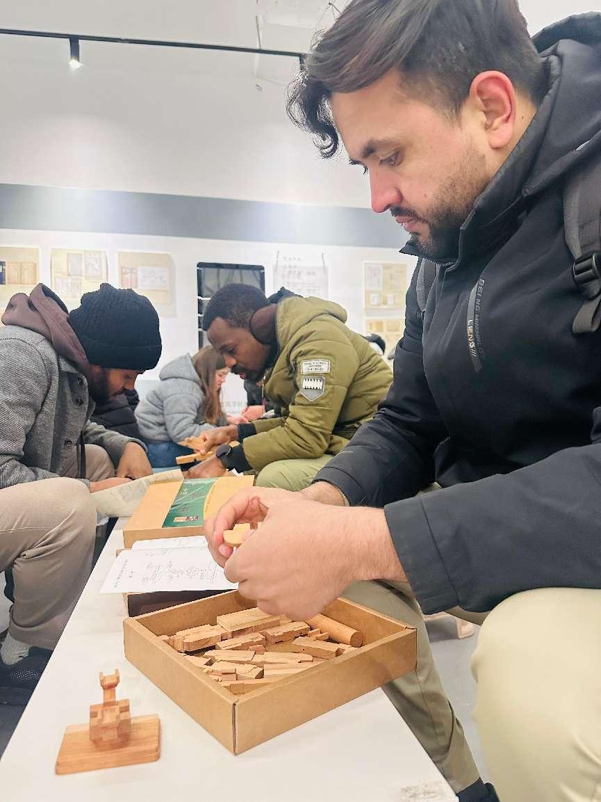 为了让留学生们了解独乐寺结构的精妙之处,穿芳峪镇联合建筑学社特意准备了独乐寺山门檐侧斗拱拼装,让留学生们在手工拼接的同时感受中国古建的独特与奥妙。