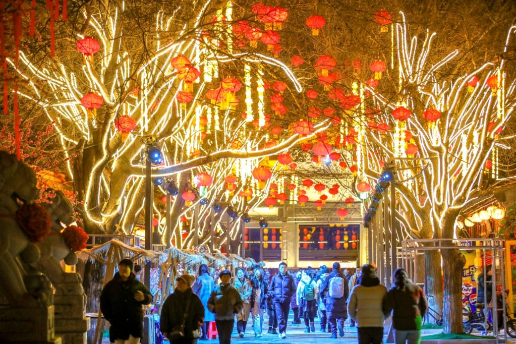 1月25日,杨柳青古镇流光溢彩,年味十足。新华社记者 宋瑞 摄