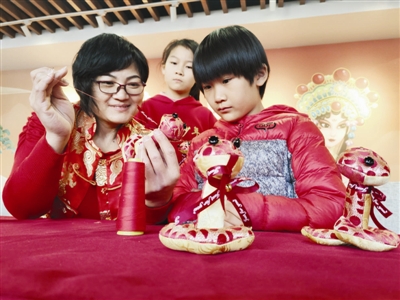 春节期间,河西区文化馆在西岸非遗体验馆举办丰富多彩的“蛇年纳福,‘艺’起来制作”主题非遗体验活动。