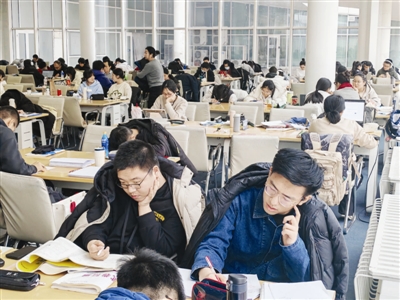 春节期间,天津图书馆自习室内座无虚席,充满浓浓的学习氛围,人们利用假期读书“充电”,为新一年的奋斗做准备。