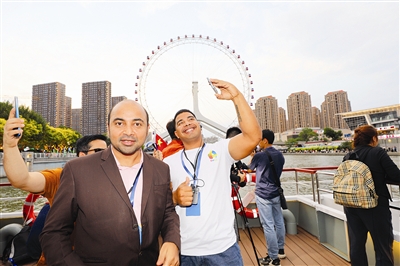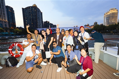 历经千年的海河水,正展示着两岸绚烂的现代风光,展示着天津的蓬勃生机。在夏日海河的夜色中,中外参访团的成员正在将这座城市的美好与精彩传递给全世界的观众。