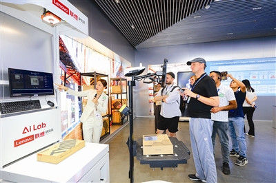 在“AI终端”展区,折叠笔记本、透明笔记本、低碳笔记本……一系列“概念本”带来的未来趋势,让参观的媒体人忍不住去触摸技术发展呈现的智能化便捷。听着这些新兴笔记本的介绍,吉尔吉斯斯坦记者阿布德别克·乌鲁·达尼亚尔告诉记者:“真的很巧,我人生的第一部笔记本电脑就是联想的。吉尔吉斯斯坦和中国是友好邻国,我们国家有很多中国产品,从联想到小米,我家里的很多电器都是中国制造,今天看到这些新产品真的令人震撼。”