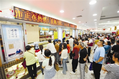 上周末,记者来到老字号品牌芦庄子桂顺斋。还未走进店内,便听到里面人声鼎沸,热闹非凡。柜台前排起了长长的队伍,市民们争先恐后地选购月饼等产品。店内工作人员忙碌而有序地穿梭其中,为顾客提供周到的服务。