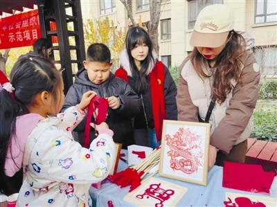 除了亲手制作,还有现场知识问答、传统游戏闯关等环节热闹非凡,小朋友们积极抢答、默契配合,在玩乐中加深对传统技艺、津城地域文化的理解,不少孩子凭借出色表现赢得集章机会,并通过集章卡获得趣味小礼品。活动现场还原传统民俗场景,展示传统技艺的传承脉络,让孩子在耳濡目染中体会匠人精神,激发对中华优秀传统文化的热爱。在活动中,天津市学联青年宣讲团的志愿者巧手制作“十五五”剪纸,用童言童语传递着“青少年担负起文化使命”的信念。