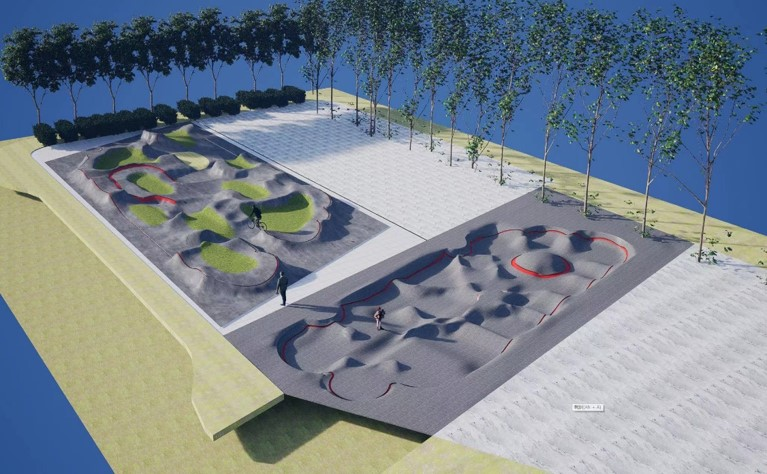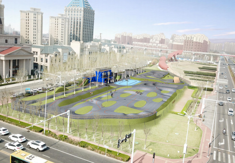 生态城以泵道单车运动为亮点,在海旭道门区广场的草坪空地上建设华北地区最大的专业级城市泵道公园。该项目占地约8000平方米,建成后,公园将面向市民开放骑行场地,并提供专业培训、组织专业竞速赛事等。