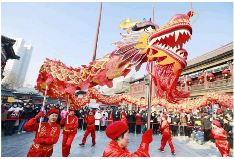 家庭团聚到山村民宿过大年成为春节假日的一大特色,蓟州区民宿接待量和收入分别同比增长71.4% 和98.7%。天津全市各大年集充满烟火气,市民游客可以 “一站式” 购齐年货,穿梭于天津的大街小巷和商业街区,在西北角、中山美食街、和平路美食街尝遍津味。各大商贸综合体也推出了促销活动和舞龙舞狮、乐队表演等春节特色演出,丰富市民游客的购物体验。