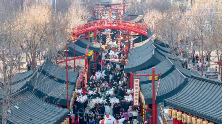 2025年春节是首个“非遗”春节,“非遗+民俗”成为假日亮点。南开区古文化街快闪演出、天津皇会展演和杨柳青年画、泥人张彩塑等非遗、老字号展示展卖活动吸引众多市民游客驻足。西青区水西公园围绕《山海经》,打造山海主题灯会;第28届杨柳青灯展,将西青历史文化特色和非遗民俗融入其中,现场灯潮、人潮、国潮涌动;蓟州区第19届独乐寺庙会、宝坻区第2届新春文化庙会、津南区2025天津万灯启新游园会等活动,也让市民游客感受到扑面而来的传统年味。