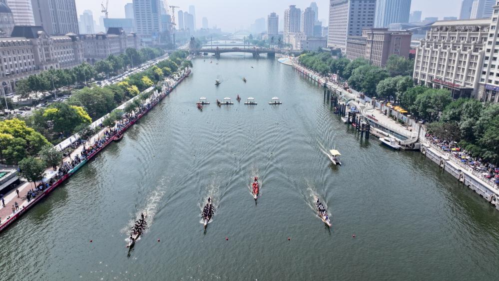这是6月10日拍摄的海河龙舟赛比赛现场(无人机照片)。新华社记者 孙凡越 摄
